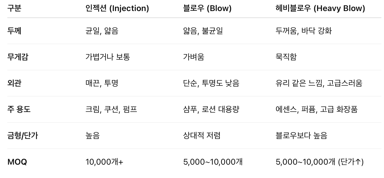 | 화장품 용기는 어떤게 있을까? 인젝션 용기 vs 다이렉트 브로우 용기 (1) | 2025.09.07 |